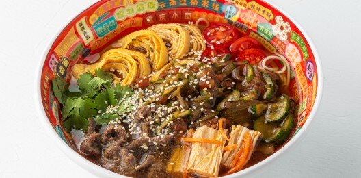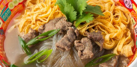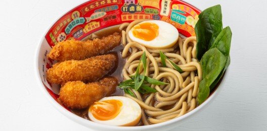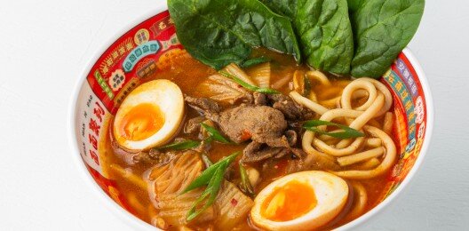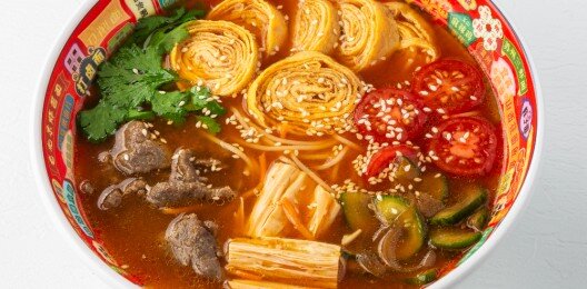 Говяжий бульон, корень имбиря, лапша удон, куриное яйцо, кинза, салат ромейн, говядина маринованная жареная, водоросли нори